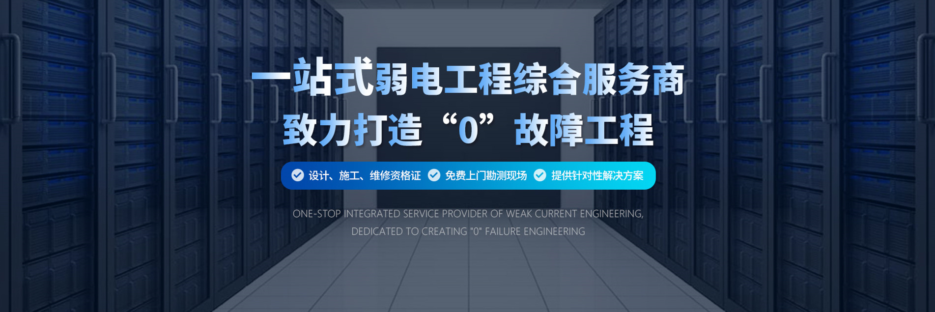 12年耕耘,實力深厚:擁有電子與智能化網絡工程級承包二級資質及安防監控資質; 具備大、中型網絡工程、安防監控、綜合布線、弱電工程等項目的設計、實施及管理經驗,能夠為客戶提供完整的網絡機房工程解決方案以及弱電維保服務。